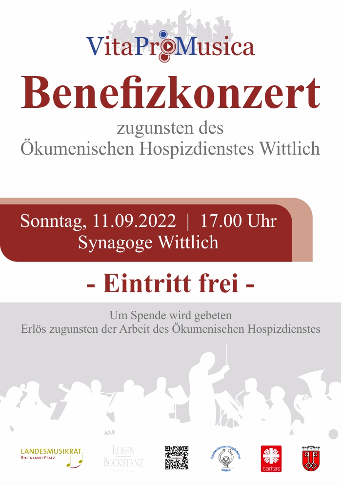Am 11.09.2022 fand das Benefizkonzert zugunsten des Ökumenischen Hospizdienstes Wittlich statt. Die ursprüngliche Nervosität wandelte sich schon während der Anspielprobe beim Klang in der Synagoge in absolute Vorfreude, Gänsehautmomente waren garantiert.