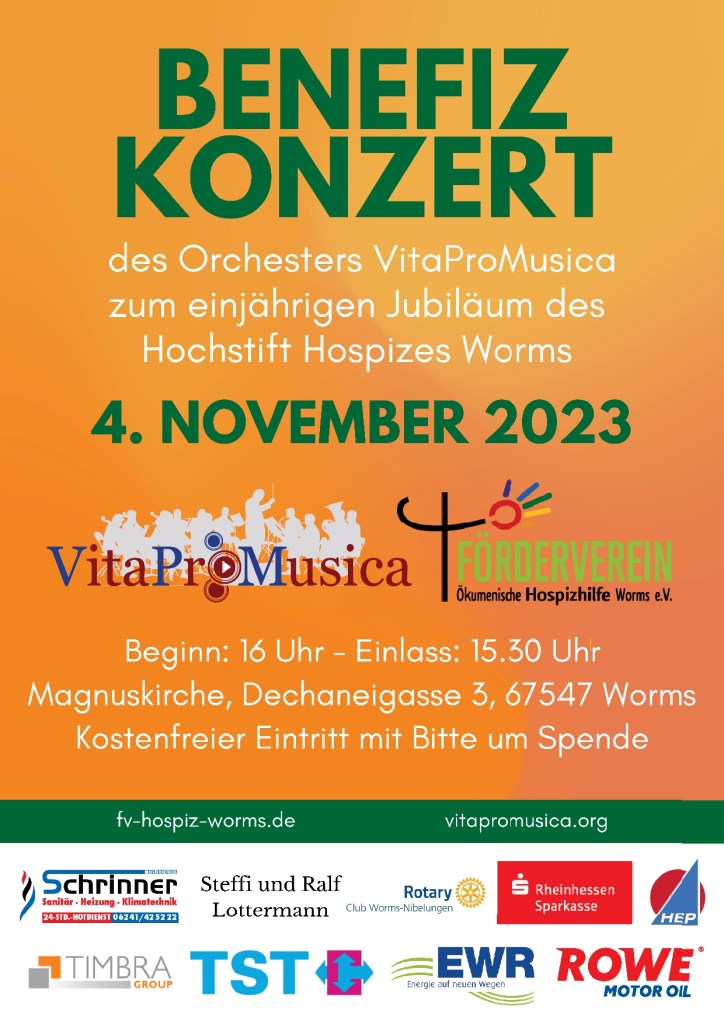 200 Gäste und das Orchester VitaProMusica erlebten einen besonderen Konzertnachmittag in der Magnuskirche in Worms. Im Mittelpunkt stand das Hochstift Hospiz, das im November 2022 seinen Betrieb aufgenommen hat. Die hohe Nachfrage nach stationärer und ambulanter Hospizbegleitung zeigt, wie wichtig dieses Angebot für Patienten und deren Angehörigen ist.